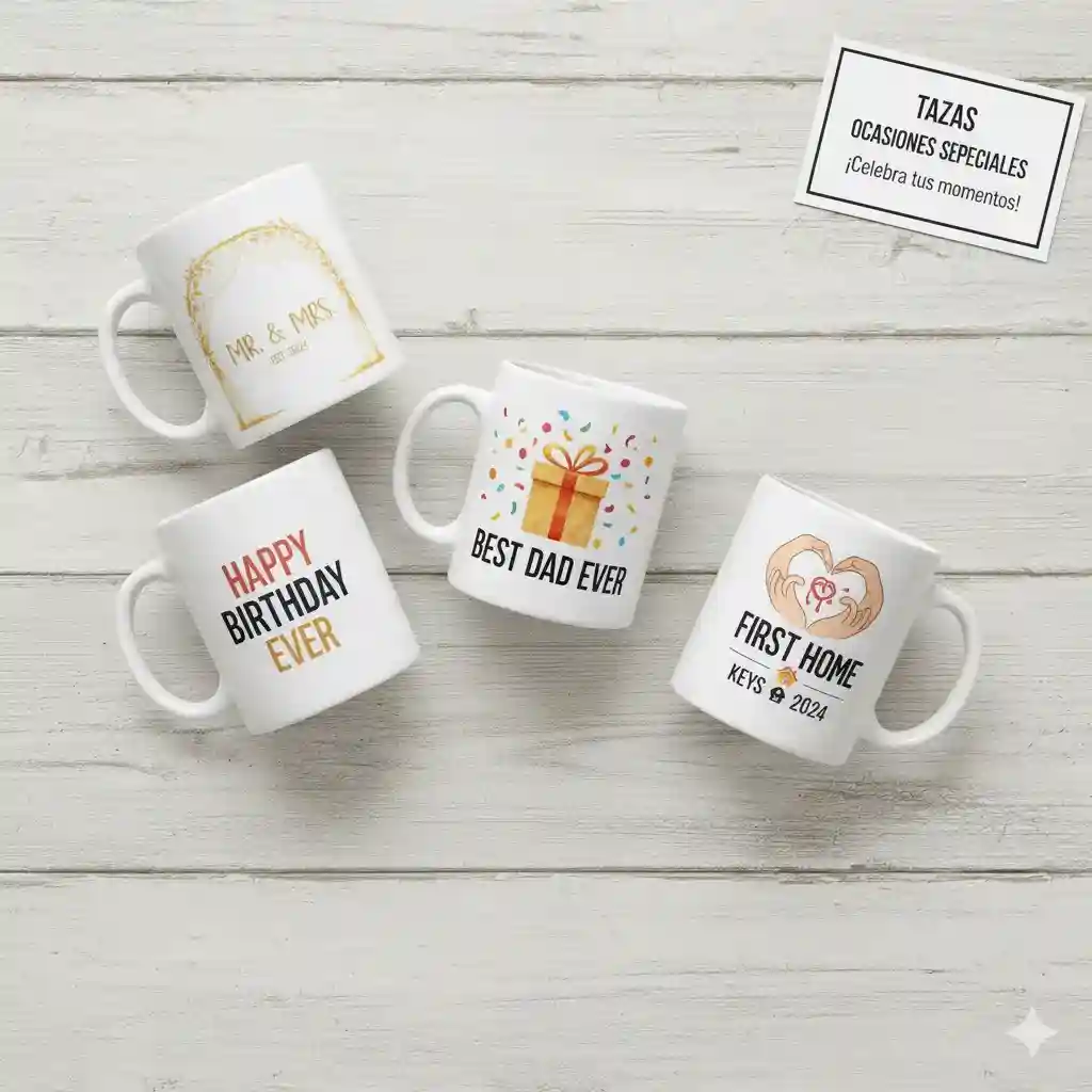 Diseñadas especialmente para ti, nuestras tazas son el regalo perfecto para cualquier ocasión: cumpleaños, aniversarios, días especiales, eventos corporativos o simplemente para consentirte. Agrega frases, fechas, logos o imágenes. Hechas en material de alta calidad, cerámica resistente al lavavajillas y al microondas. Impresión en colores nítidos y duraderos que no se borraran con el uso.